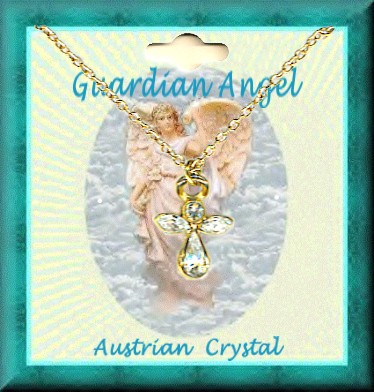 4 Austrian clear Crystal stones are set in a gold plated Angel on an 18″ gold-plated neck chain.  Shipped on 2.5″ X 2.5″ Angel rack cards, in 1 dozen pack. ($2.25 each)   See #10761 for Birthstone version. MADE IN USA