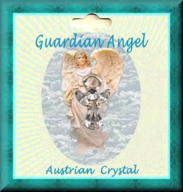 4 genuine Austrian crystal stones make up this Guardian Angel pin in gold plate. Pin measures: 1/2 X 3/4 inches. Pins are shipped on Guardian Angel rack cards in 1 dozen packs. ($2.00 each). MADE IN USA (See #10265 for Birthstone version)